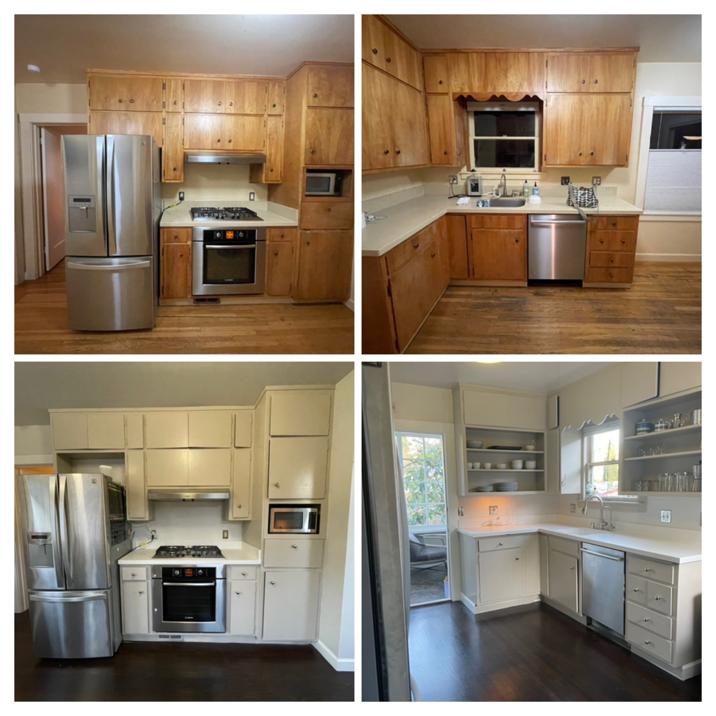 Chabolyn Terrace. This full house update included the selection of interior paint throughout (including refreshing the dated wood trim to white), overhauling the floors to a rich dark cocoa stain, new kitchen countertops and hardware, and selection and placement of furniture and textiles.
